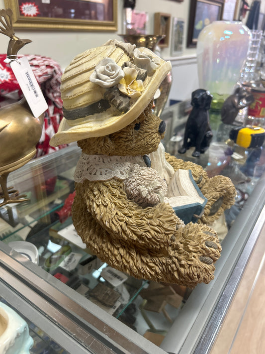 Young's Resin Teddy Bear 10" figure mother reading a Bible to a baby statue