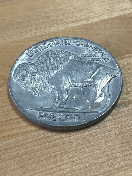 Buffalo Nickel Paperweight Collector HUGE Solid Metal Indian 3” Native American
