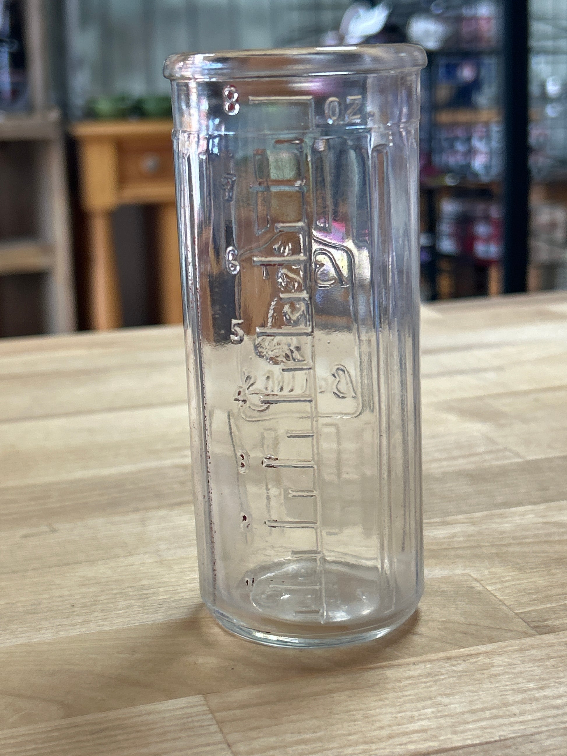Antique 1930 Baby Bunting Bottle Wide Mouth Nursing Glass Embossed 8oz