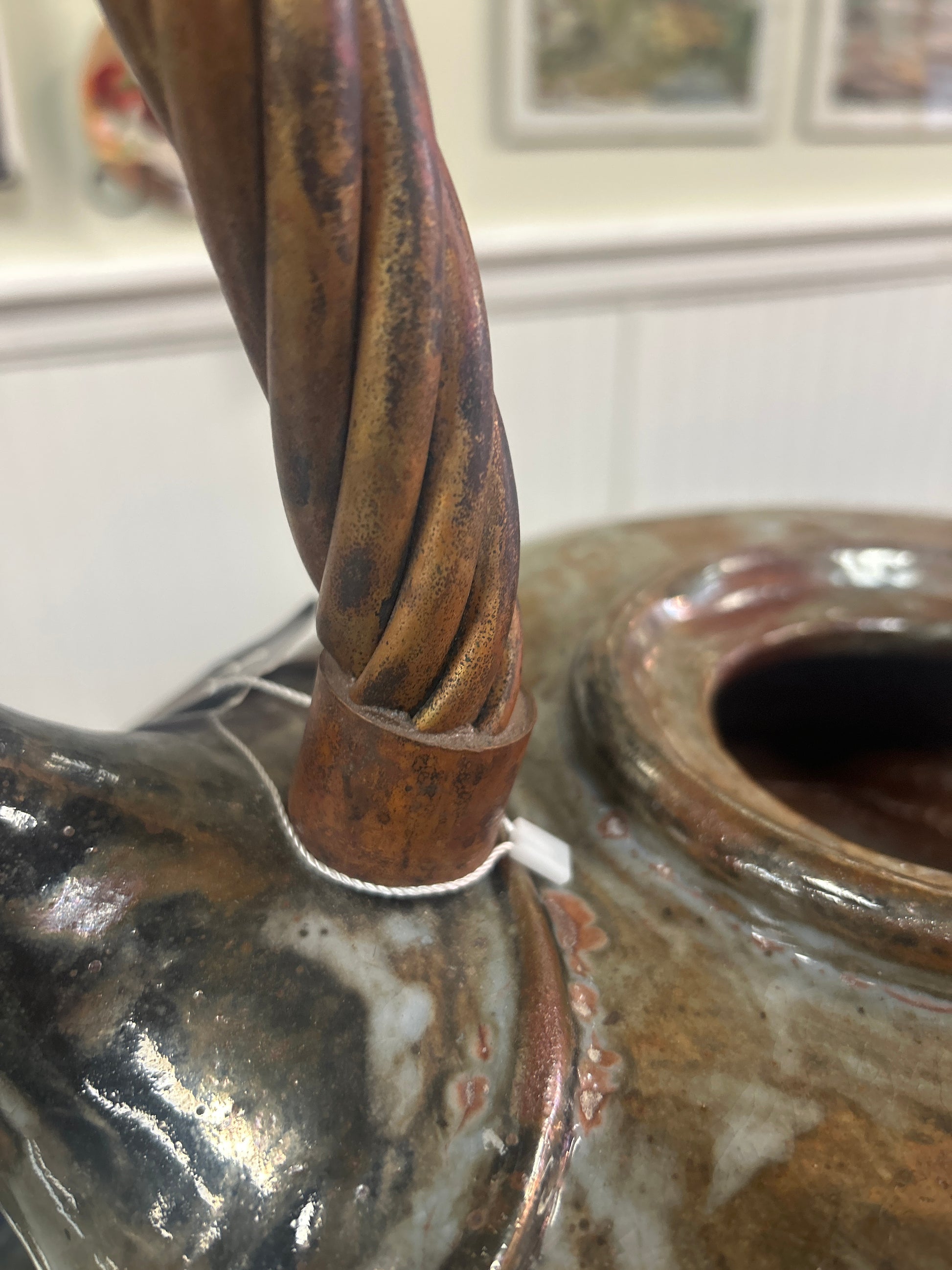 Evan Jones Studios Pottery (this is a show stopper). 20” to top of handle and from spout across 16”. This maybe too nice for our store…it’s heavy and beautifully. Nice piece ever to come through our store.