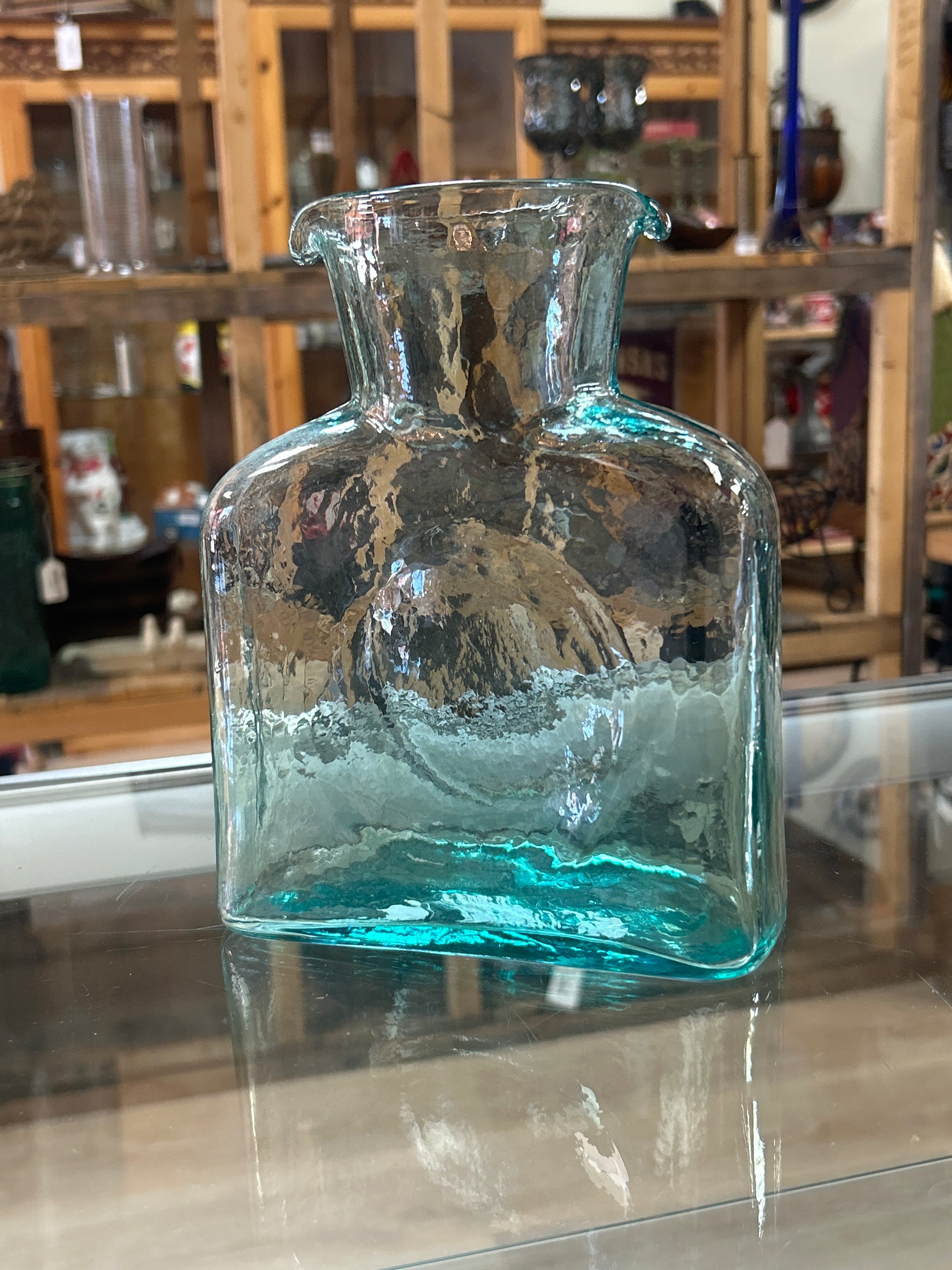 Vintage Medium Blue Blenko Glass Water Bottle / Carafe Double Spout (tiny chip on lip hard to see)
