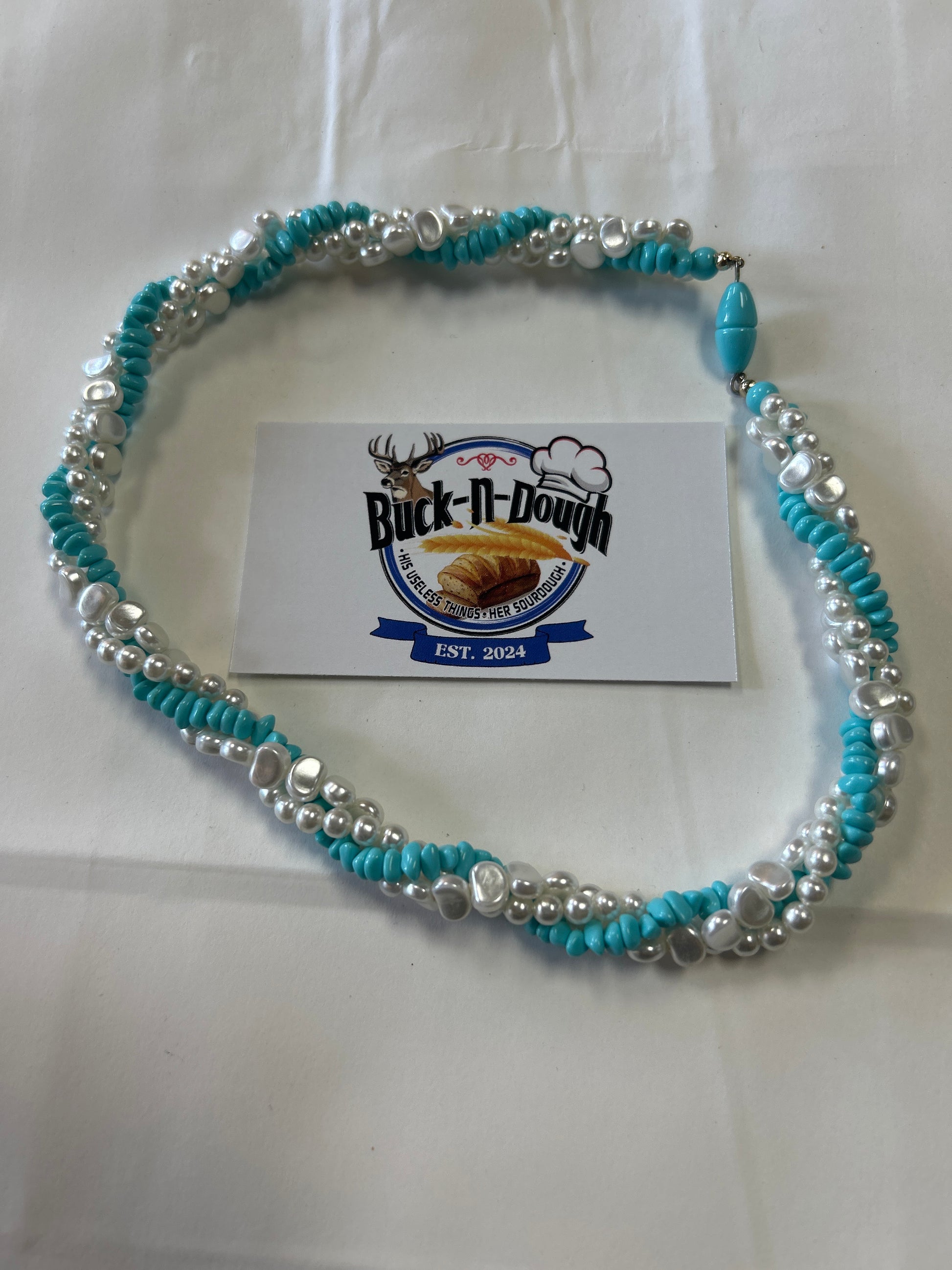 Vintage-AVON 1983 "Turquoise Impressions" Faux Pearl & Turquoise Necklace